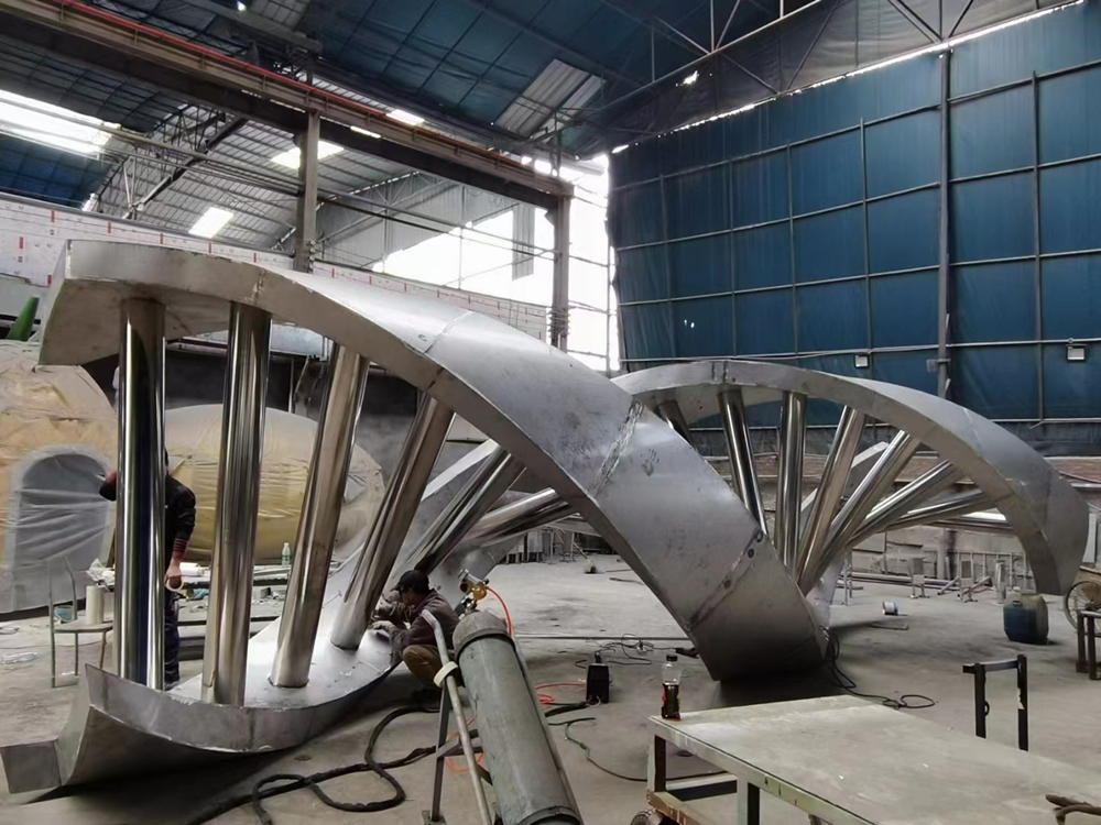 不銹鋼雕塑是常見的城市雕塑。不銹鋼材質(zhì)具有耐空氣、蒸汽、水等弱腐蝕介質(zhì)和酸、堿、鹽等化學(xué)浸蝕性介質(zhì)腐蝕的特性,因為不銹鋼雕塑有諸多的優(yōu)越性,所以很多的城市雕塑以不銹鋼材質(zhì)為材料。不銹鋼雕塑有多種造型,幾何雕塑,圓雕,抽象等,內(nèi)容豐富,可塑性強(qiáng)。 不銹鋼雕塑應(yīng)該有規(guī)律的清潔,并且放在干燥的環(huán)境里來保護(hù)。用手拿時最好帶上手套,防止手上汗水里的鹽腐蝕。