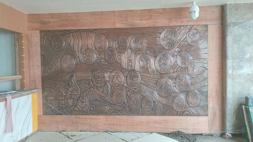 新都區(qū)中醫(yī)藥材市場紫銅浮雕 地雕 玻璃鋼人物雕塑